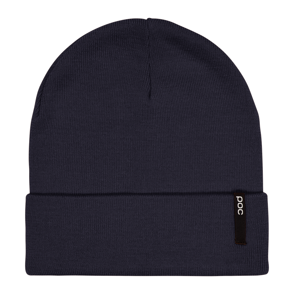 - POC beanie in merino wool and acrylic blend. 1x1 rib knit, folded brim, lightweight and warm. One size, minimalist design.