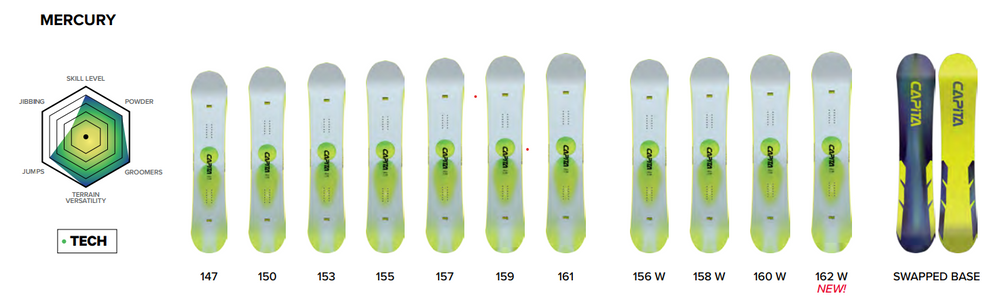 The CAPiTA Mercury snowboard is an extremely versatile board. It performs great both on groomed slopes and off-piste. It even has a place in the park on jumps!