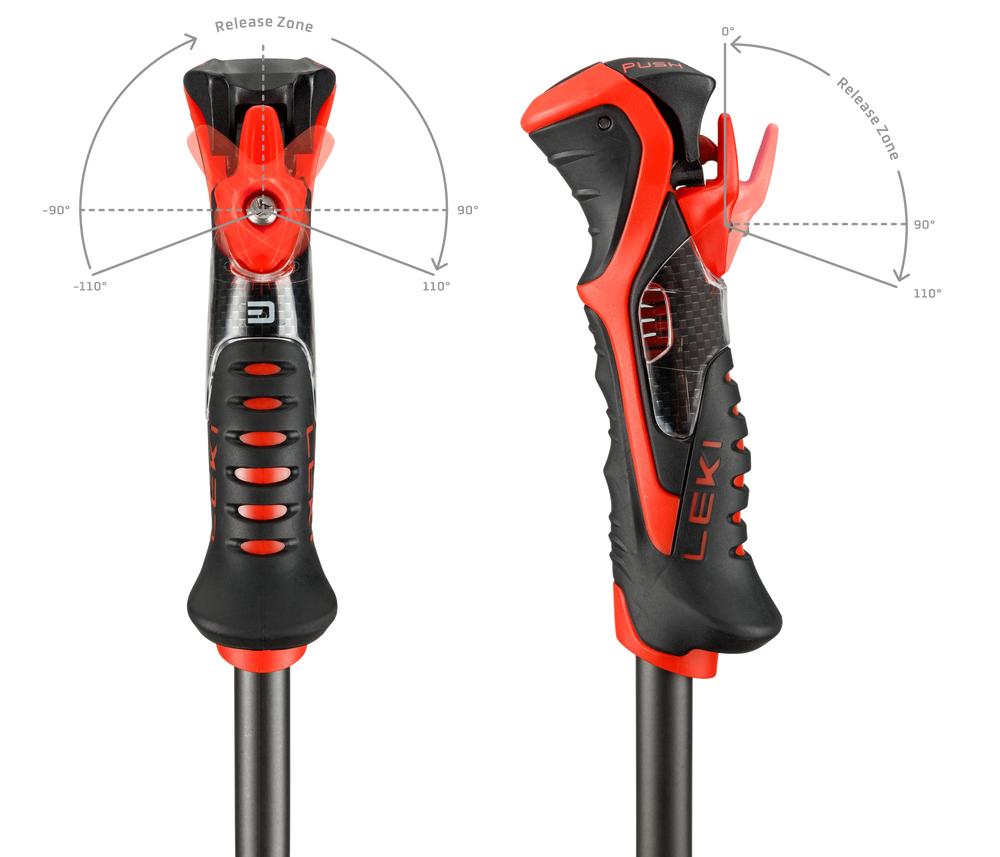 The Trigger 3D SL grip delivers a responsive feel and allows seamless click-in and release between glove and pole. The 3D trigger system significantly boosts safety by expanding the release angle fourfold, offering superior protection in the event of a fall.