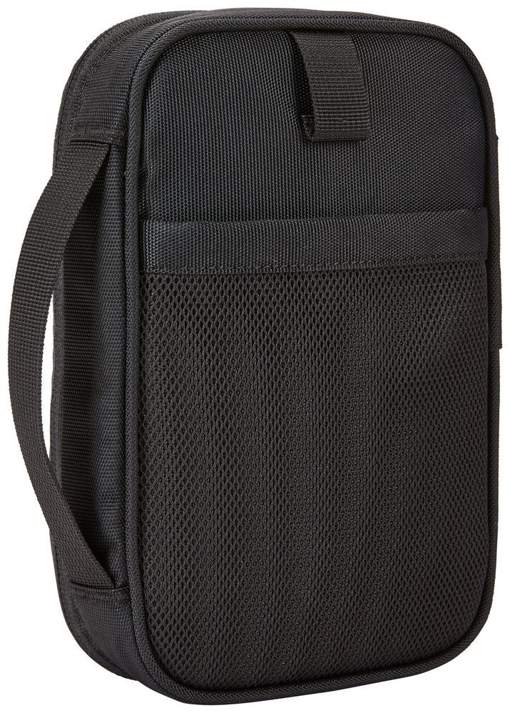 • An electronics travel case for organizing and transporting a portable charger, cords and accessories.