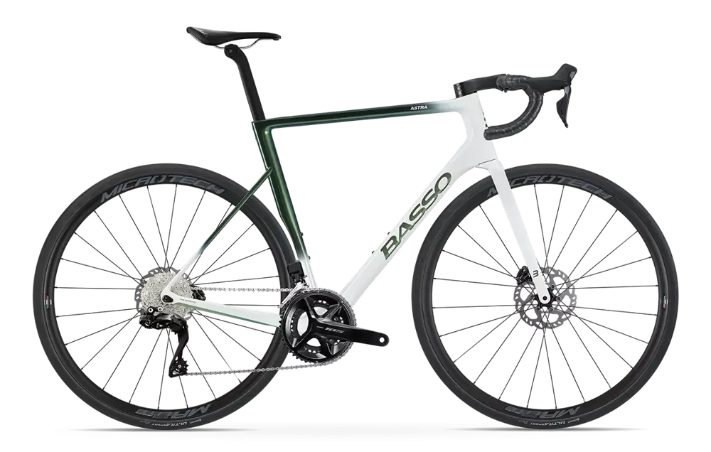 The 2023 Astra pushes the limits farther than any version before it and does so with a good dose of style. Produced entirely in house by the skilled hands of the Basso staff, the latest version of the Astra model incorporates a great deal of technology that derives from its upper tier siblings and adopts a design that follows a tighter family feeling than ever before. True to its Basso dna the Astra is a thoroughbred racehorse ready to take you further, faster and with more confidence. The straight fork and rear triangle take design cues from their higher tier bretheren on the SV and as such incorporate a similar reactive and responsive handling. Basso developed geometry studied to confer the perfect blend of snappy handling and acceleration and a comfortable position for the long haul. Constructed from 100% 3k Torayca High Modulous Carbon Fiber from a blend of T700 and MR60 fibers, the Astra is capable of offering performance on par with its higher tier siblings with the only compromise coming in the form of a few extra grams. Constructed by hand, in house, the Astra, just as the rest of Basso frames, are made to be as beautiful inside as out.