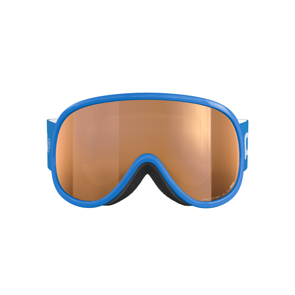 - POCito Retina kids’ ski goggles with Clarity lens, mirrored finish, UV400 protection, anti-fog coating, and silicone strap for helmet stability.