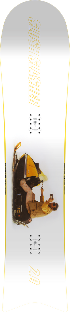 CAPiTA Slush Slasher is a fun and dynamic destroyer of mini-parks and powder that has revolutionized the approach to snowboarding. This innovative, short board excels in carving on the slopes, hitting obstacles in the park, and floating through deep snow. Slush Slasher will surely change your perspective on every terrain and bring a smile to even the most demanding riders. Designed as the opposite of a "serious" snowboard, the board with the Spring Break Mr. Slushy Slasher graphic will provide you with unique experiences on the slope, even if you're battling the winter blues. This board truly stands out in a crowd, ensuring you don't get lost in the sea of snowy fun! With its elongated nose that plows through anything in its path and the Vacation Tail in a V-shape, you can comfortably cruise through snow-covered trails. With Slush Slasher, the world becomes your seven-day weekend.