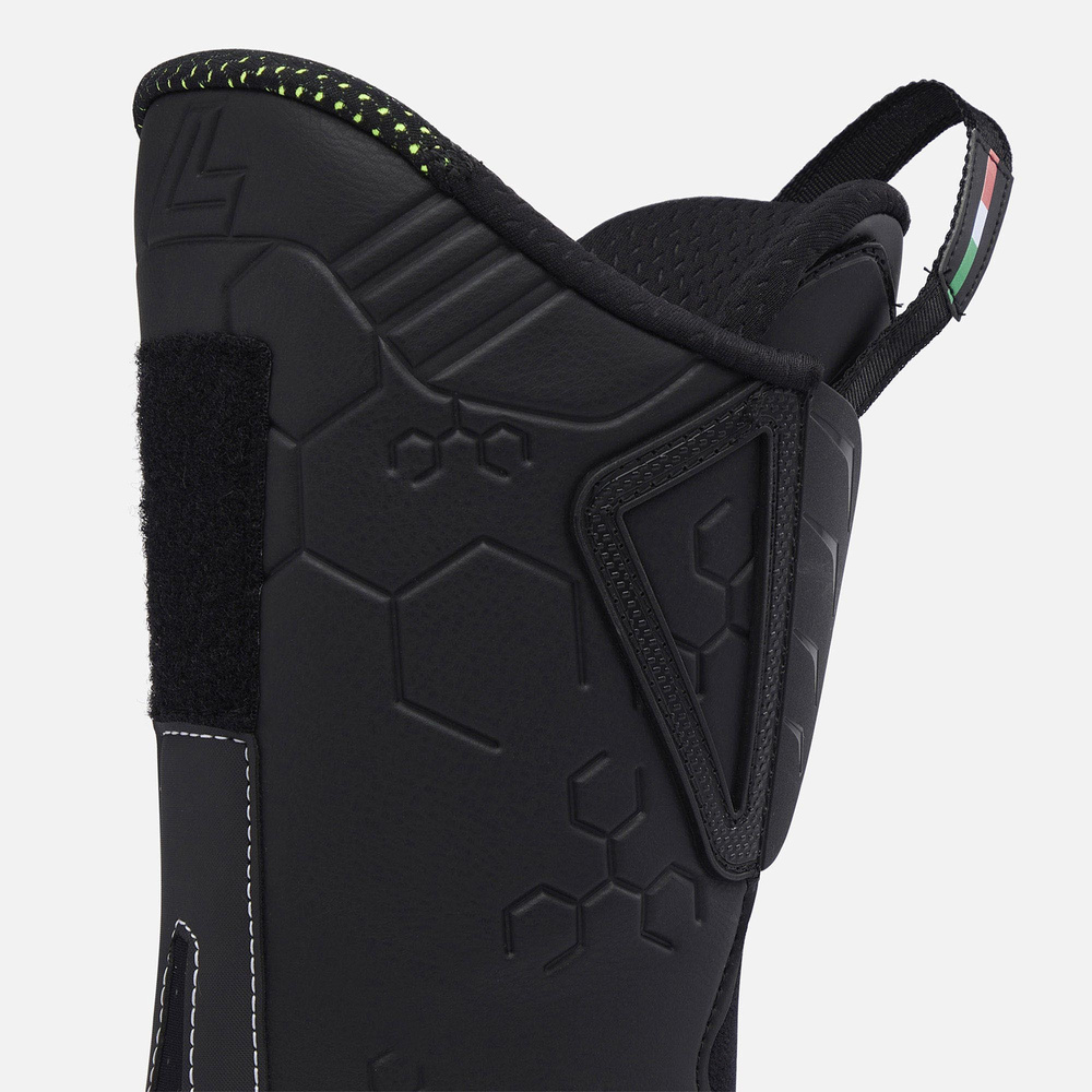 - 2 dual pivot: Creates mechanical advantage by amplifying the energy with increased leverage. Helping skiers to engage the full length of the boot for increased power and initiation.