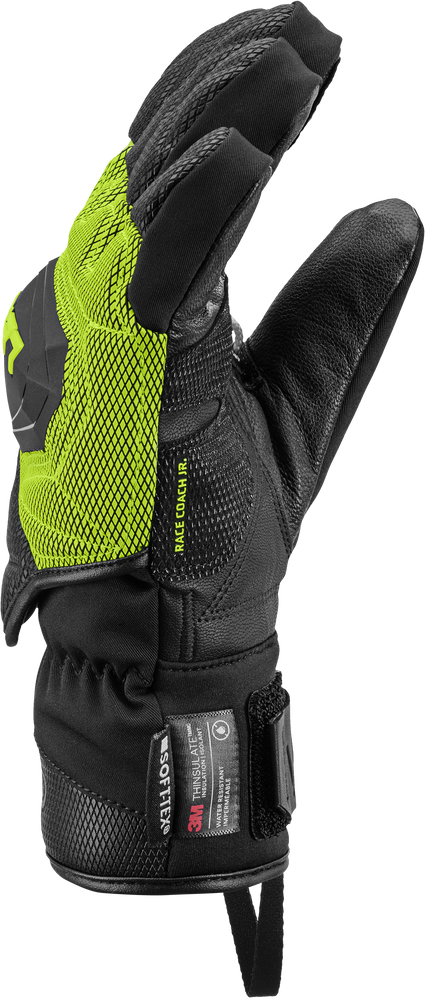 • WCR Coach 3D Junior – junior race gloves with Thinsulate™ insulation, waterproof SOFT-TEX® membrane, ceramic-reinforced EVA paddings, and goatskin palm for grip and protection.